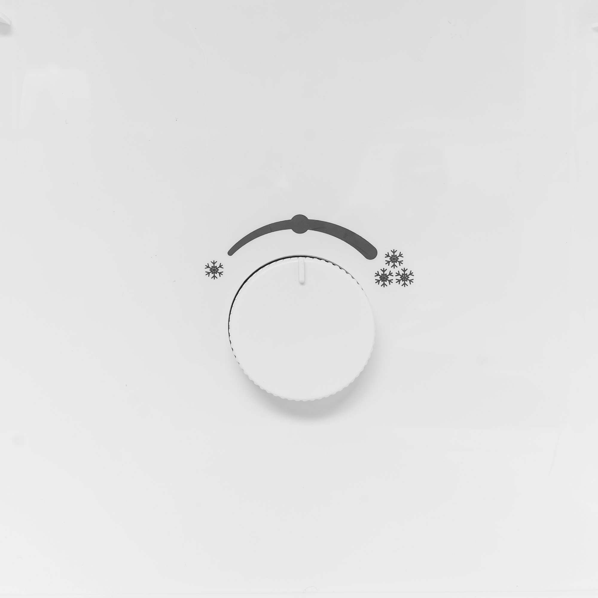 This varies based on model. Please refer to your owner's manual. If your knob is a dial that has a blue strip, the darker blue/thicker side indicates the coldest setting. If it is numbered, the highest number is the coldest setting. If your model has a thermostat with temperatures in °C /F, set it to the coolest temperature.