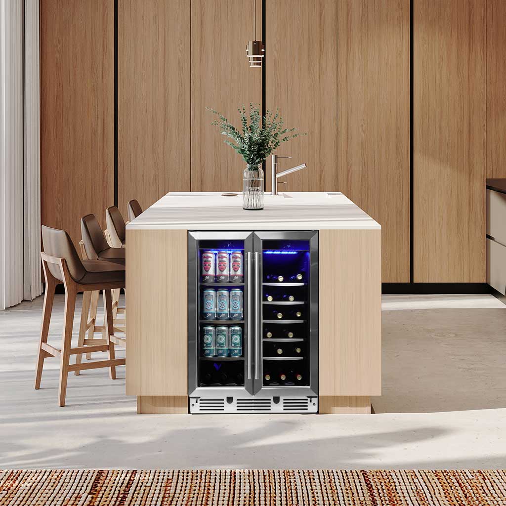 • Built-in under-counter design stores up to 64 beverage cans & 27 bottles of wine