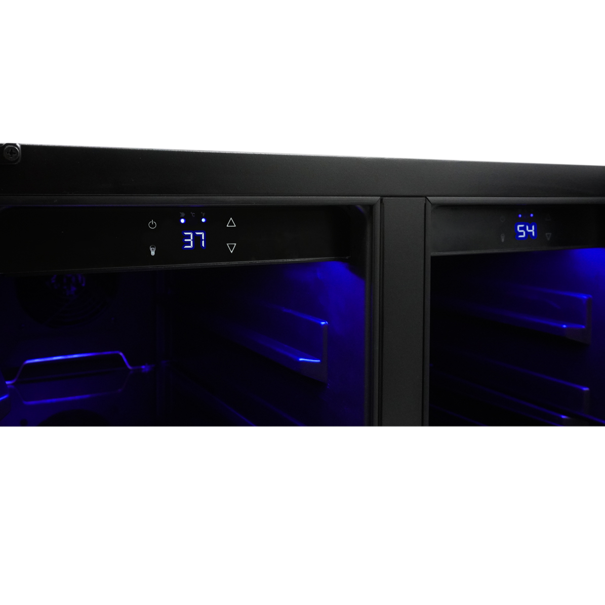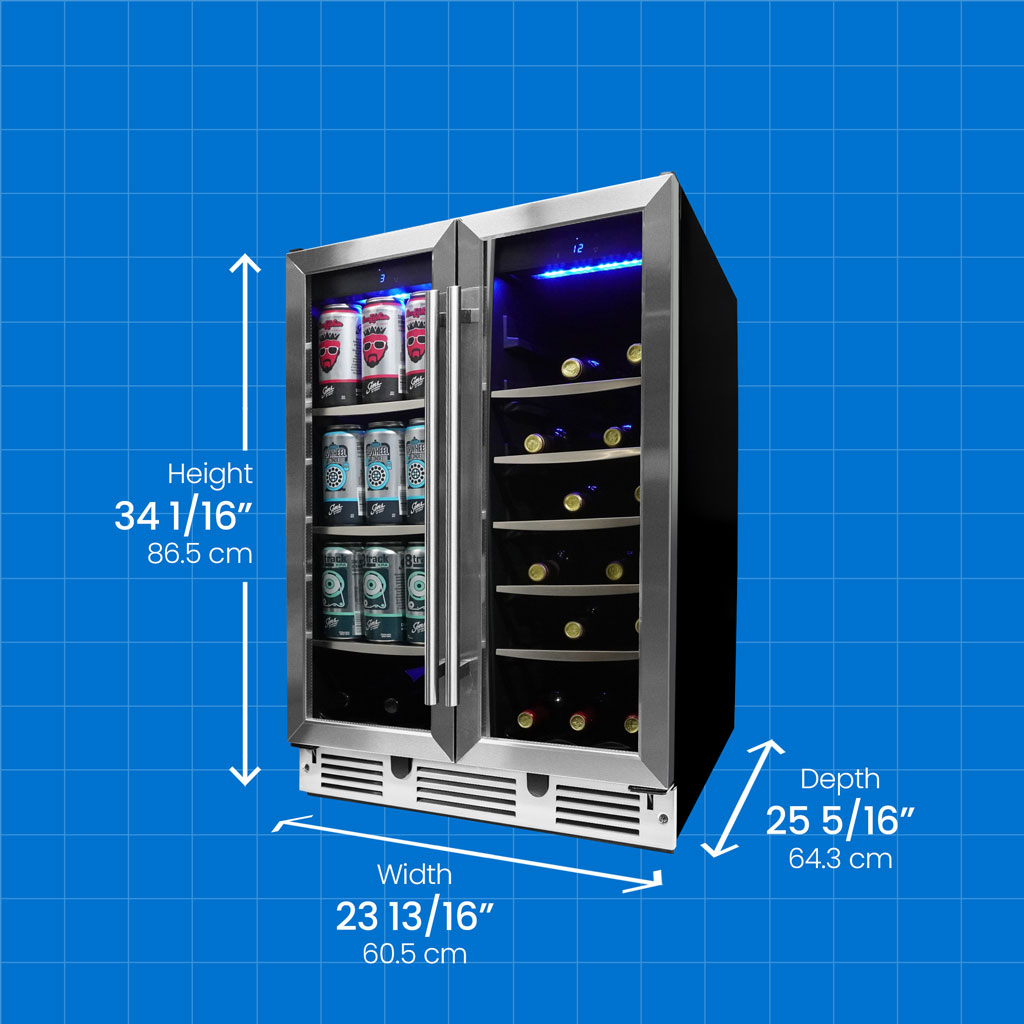 • Dual-zone temperature control: Wine 41°F – 64°F & Beverage 37°F – 64°F
