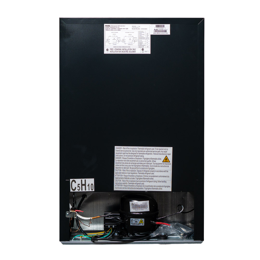 When you require a counter-high refrigerator that offers a large storage area in a compact space, you need to look further than Danby Designer’s model. This mini fridge provides 4.4 cubic feet (125 L) of refrigeration capacity and is ideal for workshops, dens, rec rooms, lunchrooms, etc. It’s outfitted with a convenient CanStor® beverage dispenser for your favorite drinks and has enough space for tall bottles. The 2.5 shelf design offers maximum storage versatility, and the appliance is controlled by an accurate mechanical thermostat and a simple semi-automatic defrosting system. If you need to freeze certain types of foods or are simply looking for a place to make and store ice cubes, this appliance meets the requirements as it also features a full-width independent freezer section. Since this attractive model is also ENERGY STAR® rated, it won’t raise your power bills. This compact fridge can be found in white, black, and smudge-free spotless steel finishes, making it suitable for any style of existing décor. In addition, it comes with an integrated door handle with a convenient reversible door hinge for both left and right-handed opening.