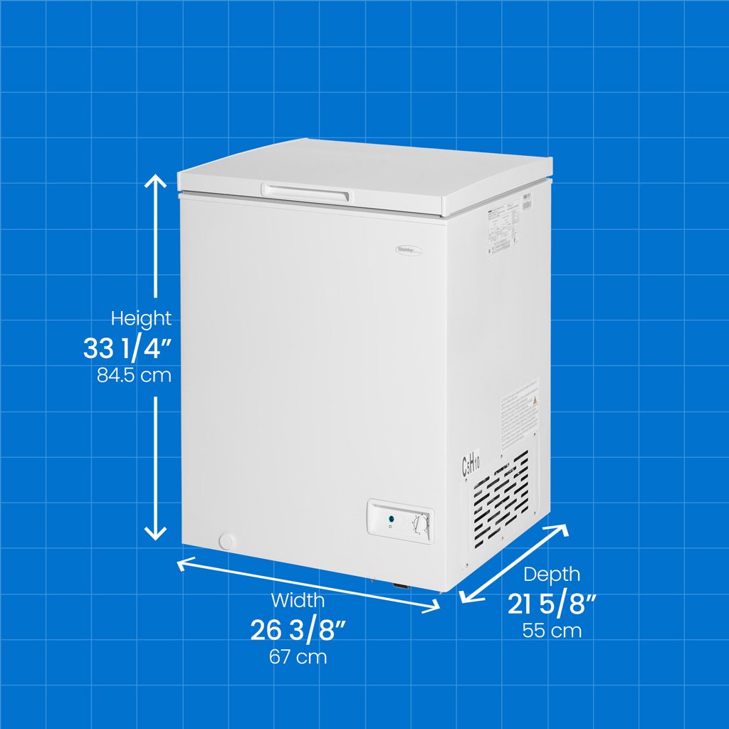 Back to SalesThe Danby Diplomat 5.0 cu. ft. Chest Freezer is an ideal solution for households, cottages, offices, or any other location requiring additional storage space for frozen foods. Our power-on indicator light enables you to confirm the safety of your frozen items’ preservation quickly and conveniently. This model is Garage Ready & able to maintain optimal performance at external temperatures between 0°F to -110°F (-17°C to -43°C). The 360-degree cooling system utilizes D-shaped coils that snugly hug the inner wall to optimize the freezing time of newly added foods in the freezer, which preserves nutrients. This model is DOE-compliant, saving you energy and money. This freezer can sit closer to walls thanks to the new thinner profile hinges. Additionally, the counter-balance hinges enable the lid to stay open at any angle, providing easy access. The freezer is equipped with a removable storage basket to help you separate and organize your food.
