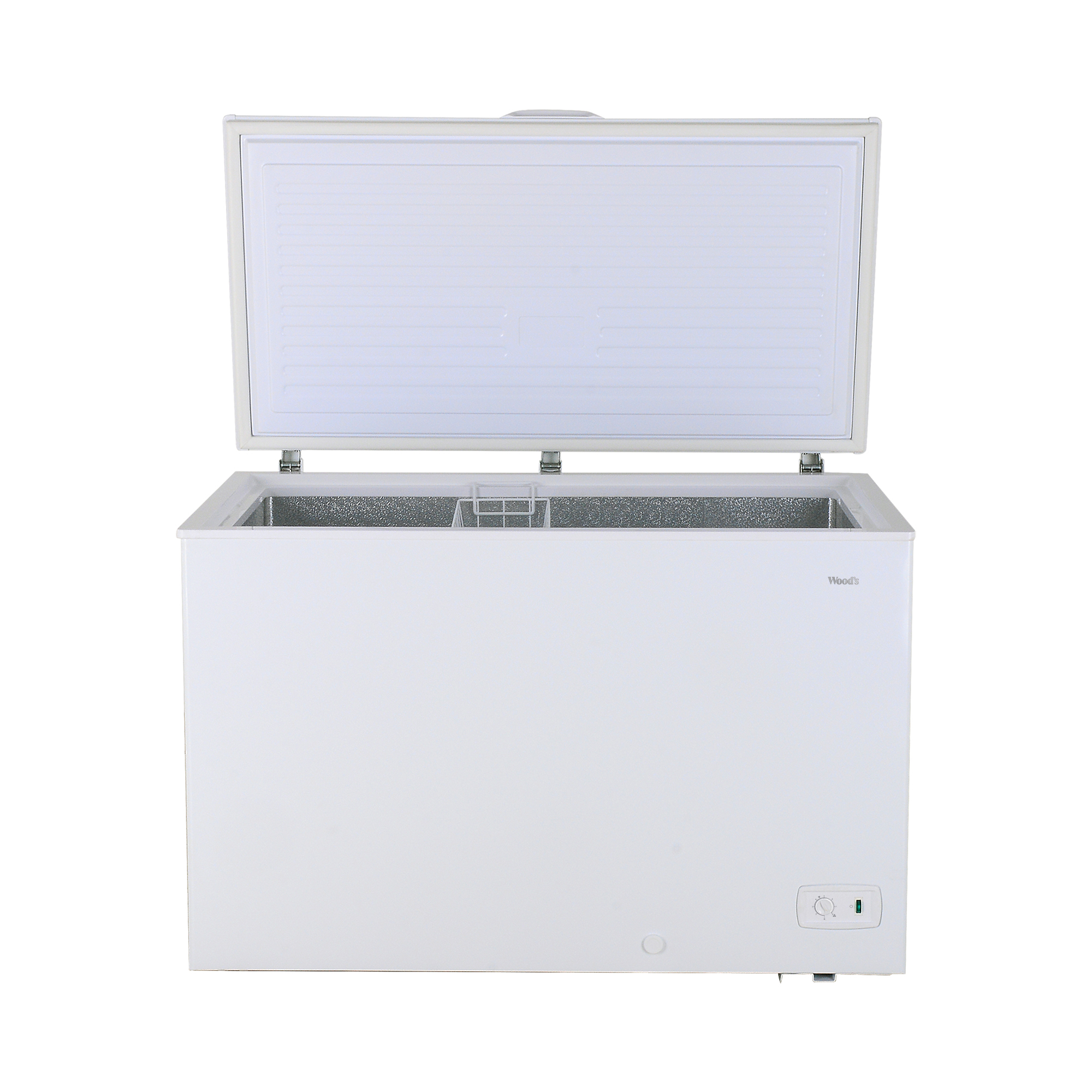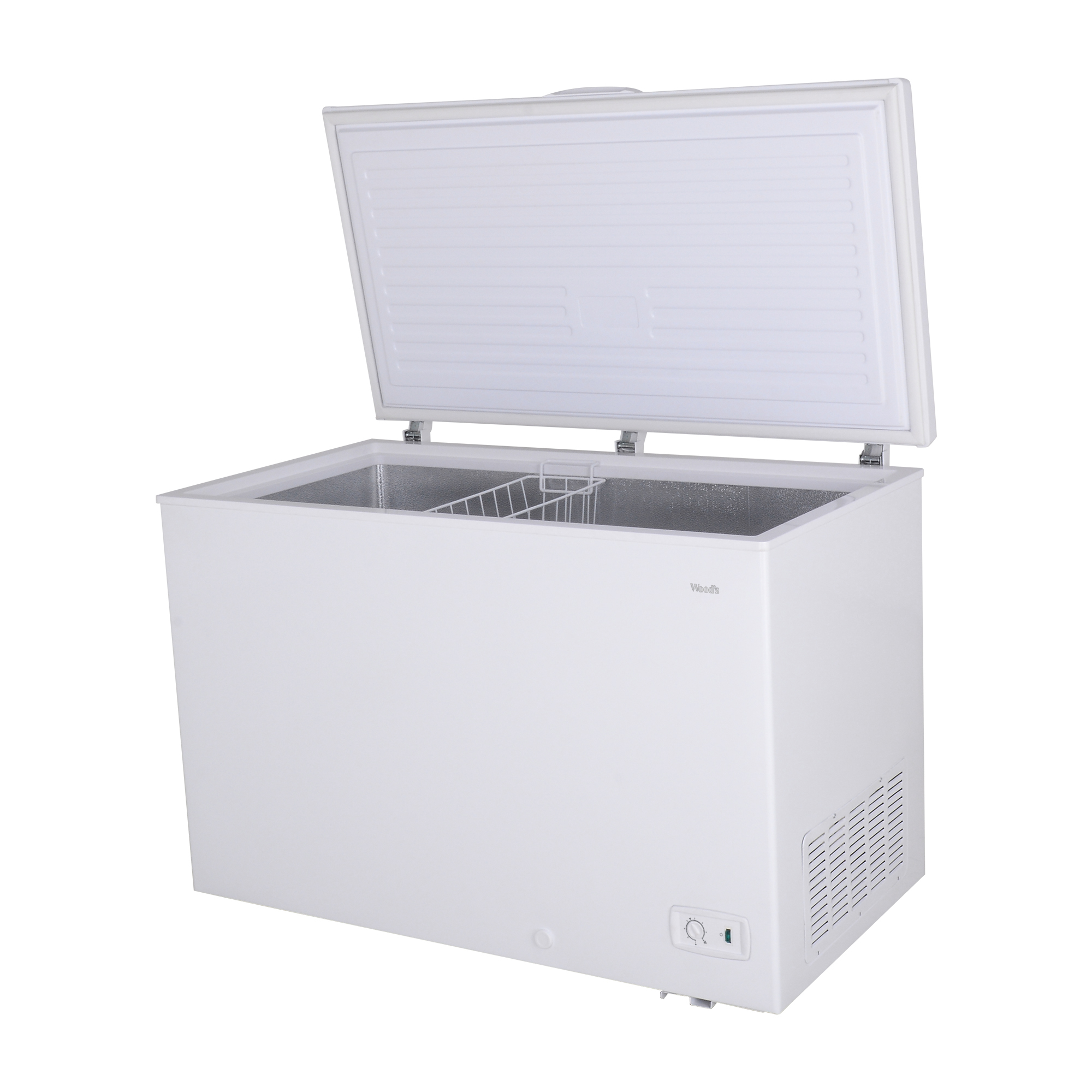 Store more of your favourite frozen foods and optimize bulk food storage with the reliable & durable Wood’s 13.0 cu. ft. Chest Freezer. Easily determine if your frozen items are safely preserved with our power-on indicator light, providing a quick and convenient visual confirmation. This model is Garage Ready & with efficient compressor technology is able to maintain optimal performance at external temperatures between 0°F and -110°F (-17°C and -43°C). The front-mounted drain enables hassle-free defrosting or cleaning of the freezer while minimizing any potential mess. The removable basket lets you organize contents efficiently, and the counter-balance hinges keep the lid open at any angle, providing effortless access.