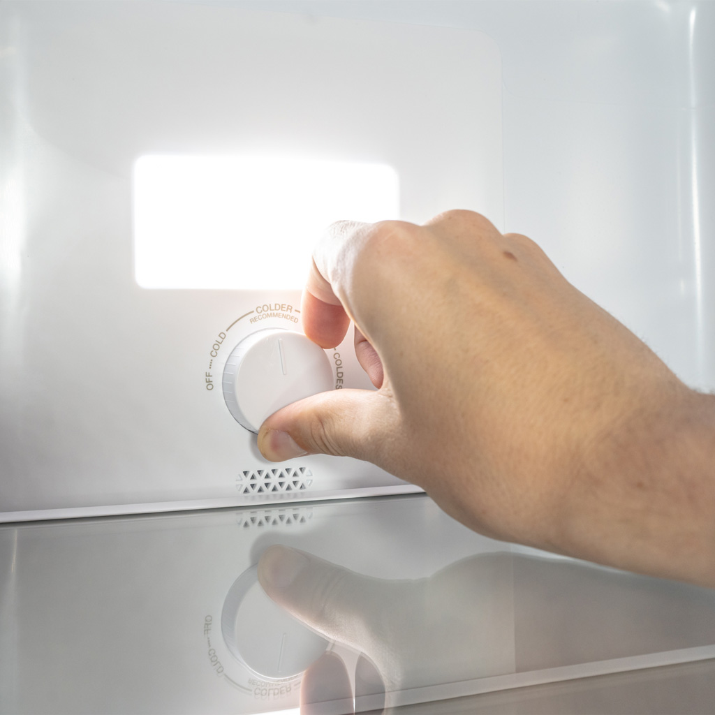 This light will make it easy to see all areas of your fridge while the thermostat will give you more control over the internal temperature of the unit.