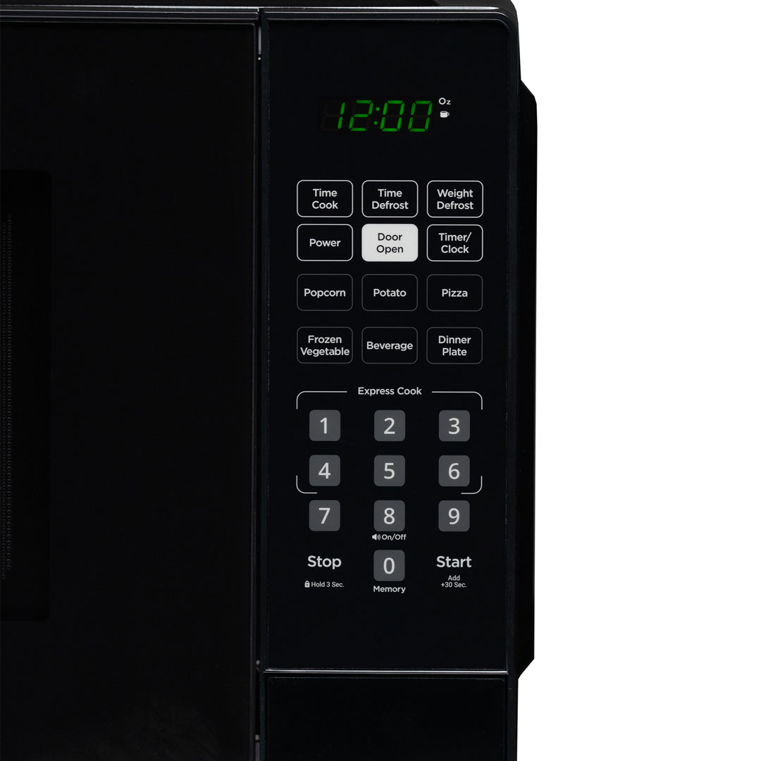 - 6 Convenient Auto Cook Options: Popcorn, Potato, Pizza, Frozen Vegetables, Beverage, Dinner Plate.