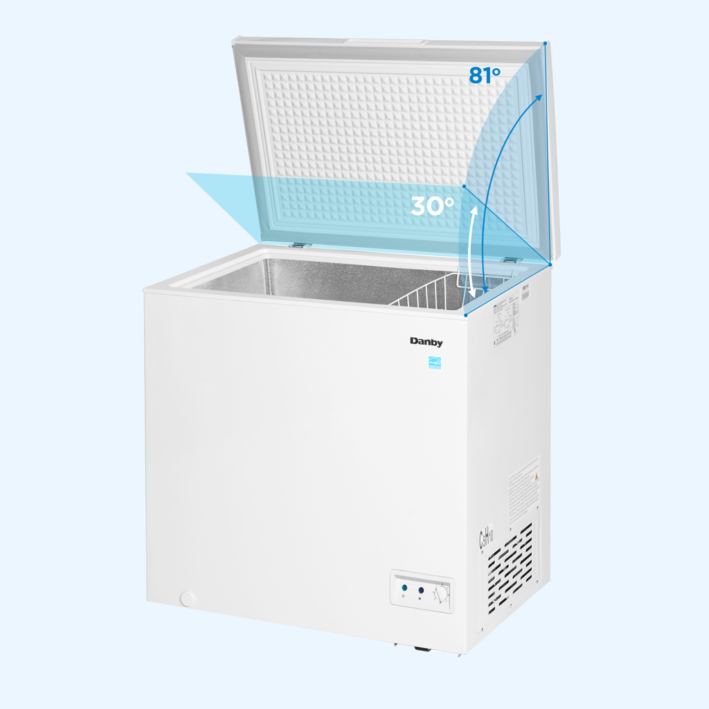 Les nouvelles charnières à profil plus mince permettent au congélateur de se rapprocher des murs, tandis que les charnières de contrepoids maintiennent le couvercle ouvert à n’importe quel angle pour un accès facile.