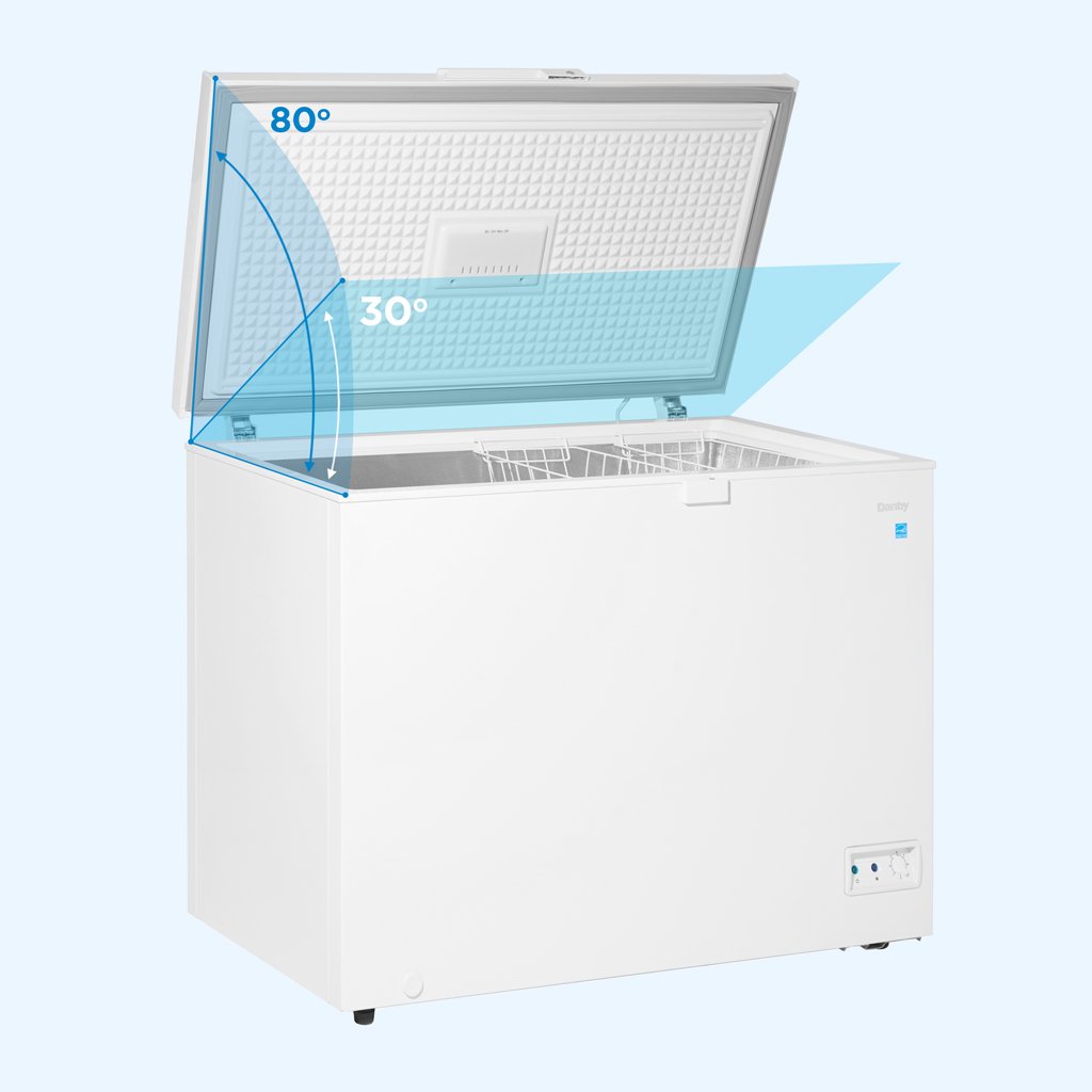 Si vous avez juste besoin de passer la main pour attraper quelque chose sur le dessus de votre appareil, il vous suffit d’ouvrir le couvercle à 30°. Le couvercle se maintiendra dans cette position, ce qui vous permettra d’utiliser vos deux mains pour saisir ce dont vous avez besoin. Cela permet également de réduire la consommation d’énergie pour réguler la température du congélateur lors de l’ouverture et de la fermeture.