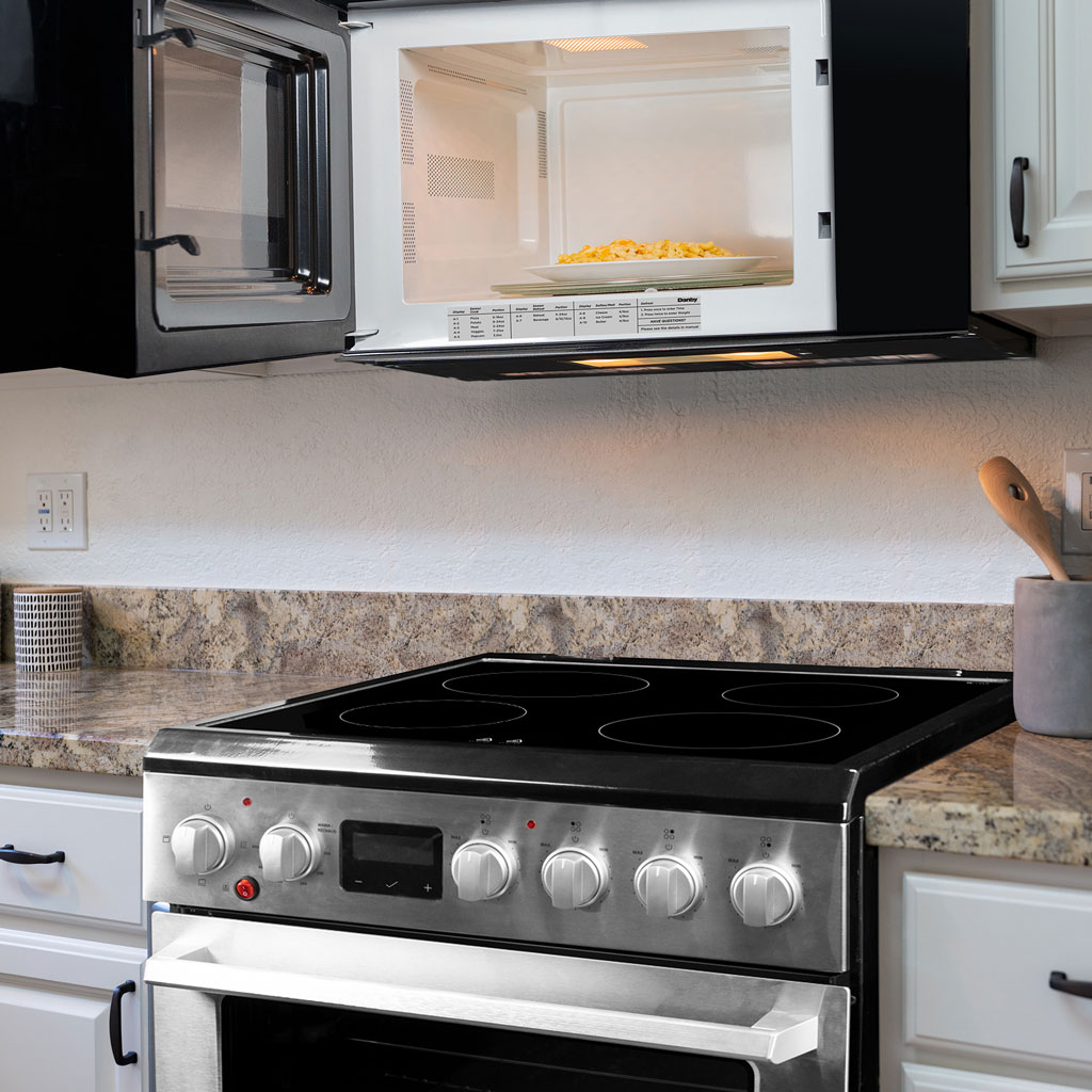 Conçu pour les petits espaces et les grandes cuissons avec un four de 1,4 pied cube. Idéal pour les grands plats à casserole et les assiettes de dîner.