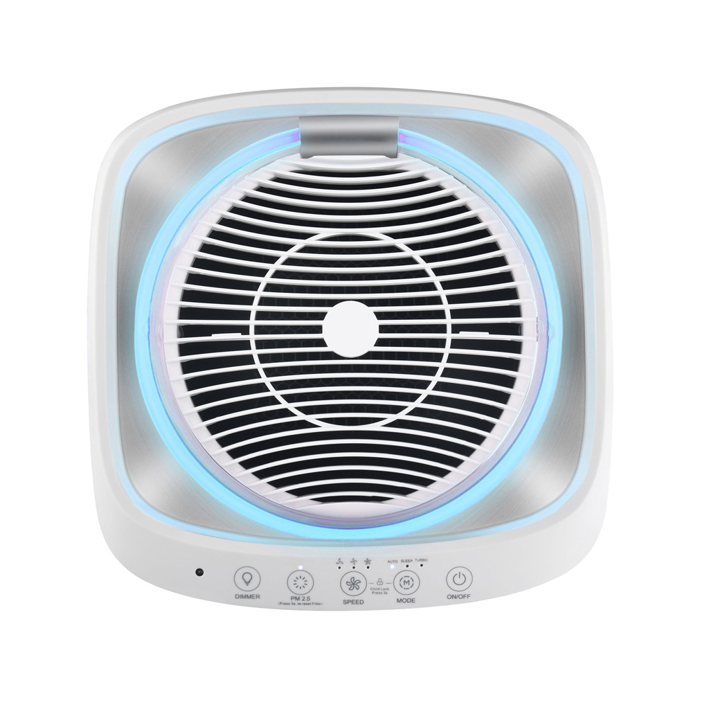 - Affichage et commandes LED – Affiche les mises à jour de la qualité de l’air et les notifications d’état du filtre.