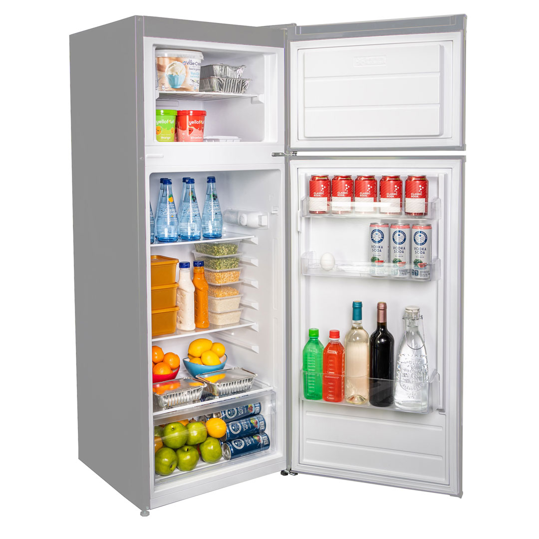 Ce réfrigérateur de la taille d’un appartement avec un congélateur sur le dessus est le choix parfait pour tous ceux qui vivent dans un petit espace ! Avec ses 7,4 pi3, vous pouvez stocker tout ce dont vous ou votre famille avez besoin, dans n’importe quelle pièce de votre maison. Équipé d’une charnière de porte réversible pour une ouverture à gauche ou à droite, d’une lumière intérieure qui s’allume lorsque la porte s’ouvre, d’un bac à glace, d’un bac à œufs et d’un grattoir à glace, ce modèle peut être utilisé comme réfrigérateur principal de la famille si vous avez une petite cuisine, ou comme option secondaire fiable ! Il est également équipé d’un thermostat mécanique, de 4 tablettes en verre sur toute la largeur (et 3 sur la porte), d’un tiroir à légumes, de pieds de mise à niveau à l’avant et d’un rangement pour les grandes bouteilles sur la porte du réfrigérateur. Ce modèle conforme à la norme Energy Star® sera un excellent ajout à votre appartement, votre condo, votre chalet ou votre bureau à domicile !