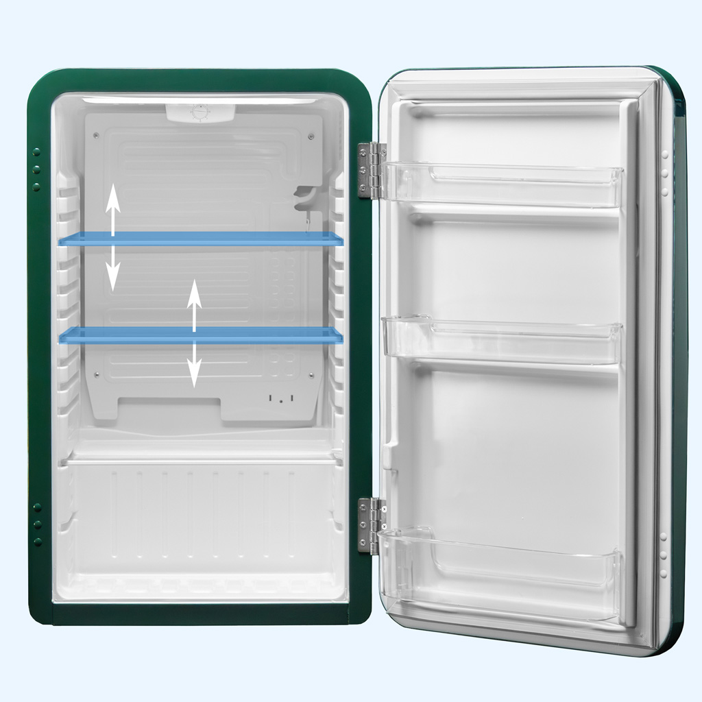 Avec deux étagères complètes, une étagère demi-taille et trois étagères de porte, vous pouvez y ranger tout ce dont vous avez besoin dans ce réfrigérateur pratique.