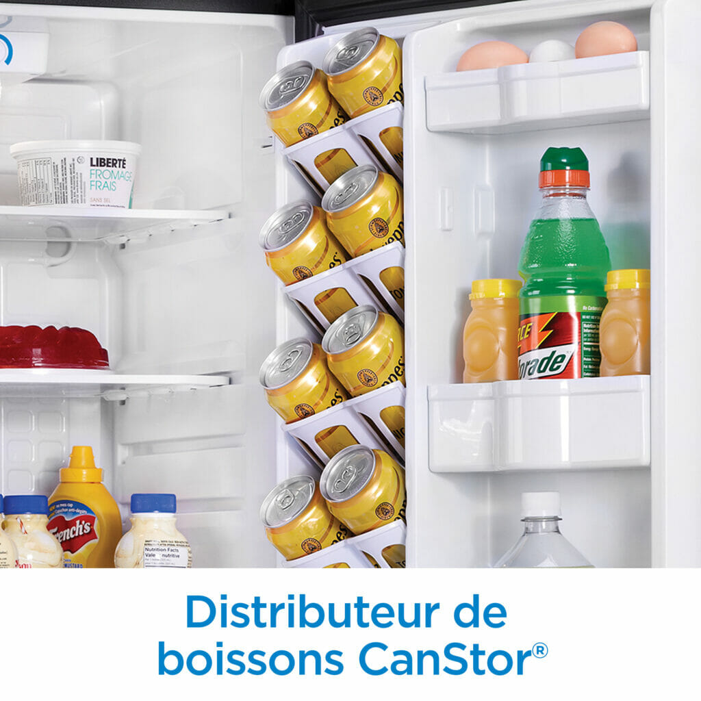 Plus besoin de courir jusqu’à la cuisine ! Profitez des boissons réfrigérées lorsque vous en avez le plus besoin grâce à notre réfrigérateur compact Danby Designer® conforme aux normes Energy Star®. Bénéficiant d’une impressionnante capacité de 4,4 pi3 (124 L), ce modèle de la hauteur d’un comptoir est un complément efficace pour votre réfrigérateur familial. Cet appareil comprend aussi le distributeur de boissons Canstor®, des charnières de porte réversibles et de l’éclairage intérieur.