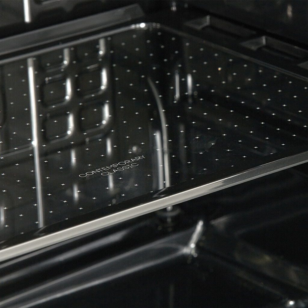- 2 étagères en verre pleine largeur et 1 étagère en verre demi-largeur réglables