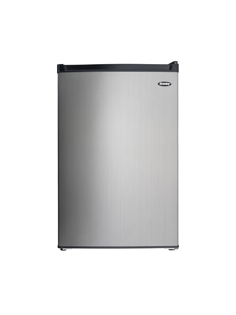 23% Off Back to SalesModèle Danby de 4,5 pi3 Réfrigérateur compact à une porte avec un vrai congélateur en acier inoxydable. Ce réfrigérateur compact de Danby offre une capacité de 4,5 pi3 avec un fini élégant en acier inoxydable. Il comprend une section de congélateur pleine largeur (fonctionne à -18 °C) pour s’assurer que votre crème glacée et vos denrées périssables soient conservées surgelées et il est homologuée Energy Star. Cet appareil comportant une porte réversible et une conception peut s’adapter parfaitement contre un mur ou dans un coin. Et les tablettes en verre réglables facilitent le nettoyage en cas de déversement. Parfait pour les dortoirs, les bureaux ou les salles de réception, ce réfrigérateur compact de Danby avec véritable congélateur est le parfait mini-réfrigérateur à une porte.