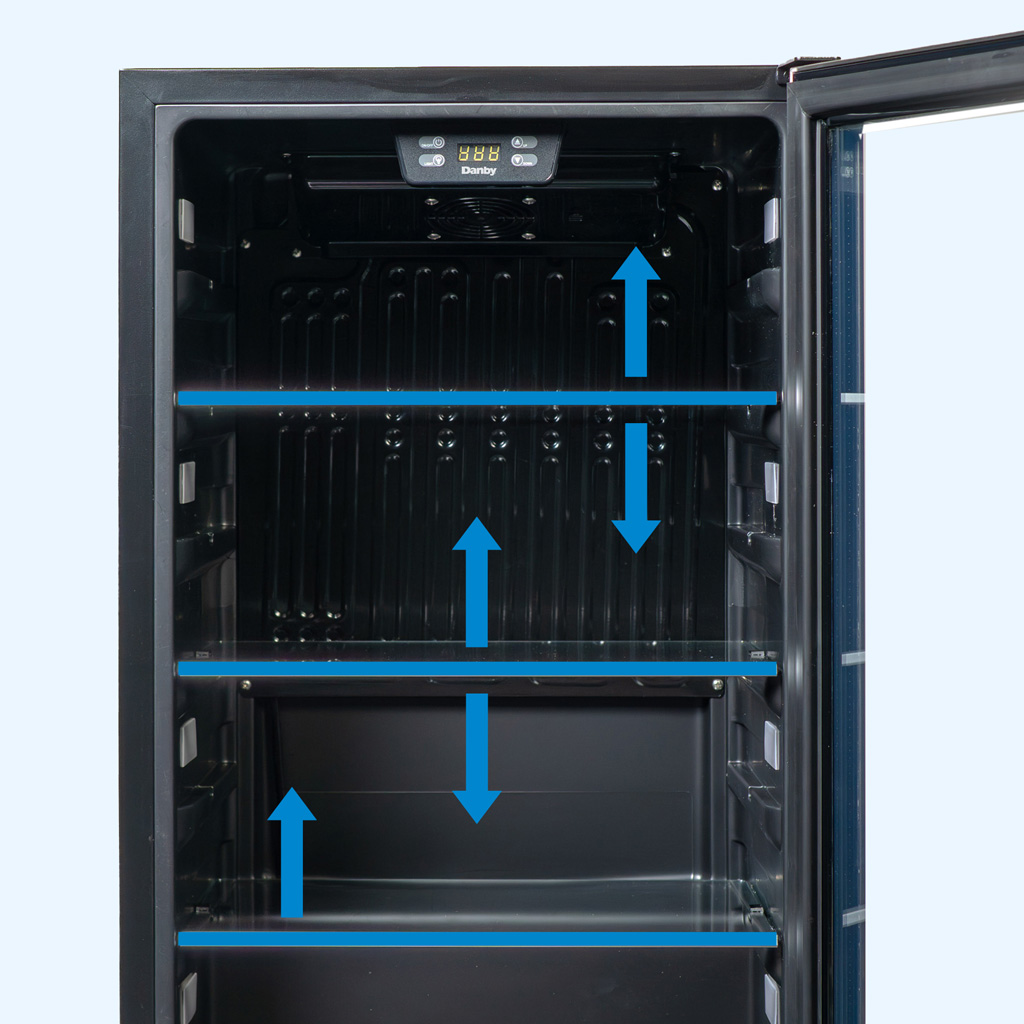 • Personnalisez le contenu grâce à trois solides clayettes en verre réglables pour ranger des boissons de différentes tailles