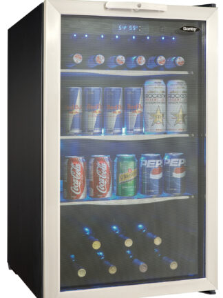 Que vous receviez des invités ou que vous ayez besoin d’une réfrigération plus pratique pour votre famille, ce centre de boissons suprême offre style et praticité. Ce centre de boissons est parfait pour l’organisation de la cuisine et l’accueil dans les petits espaces comme un appartement, un condo ou un chalet ! Économisez l’espace du réfrigérateur pour les aliments ou les restes avec cette unité spacieuse offrant 4,3 pieds cubes (122L) d’espace de refroidissement et de stockage. Refroidissez jusqu’à 124 canettes de boisson (355 ml) ou 88 canettes de boisson (355 ml) et 7 bouteilles de vin. L’appareil est magnifiquement conçu avec une porte en verre trempé avec garniture en acier inoxydable et trois tablettes en verre trempé garnies d’acier inoxydable. Une plage de température réglable vous permet de programmer le refroidissement entre 4°C et 18°C (39°F – 64°F) et peut être réglée par le biais du thermostat électronique précis à LED bleue. Le contenu intérieur est mis en valeur par le système d’éclairage à LED bleues et protégé par le verrouillage de porte intégré. Ce petit réfrigérateur est également doté d’une ingénieuse charnière de porte réversible qui vous permet de l’ajuster pour une ouverture à gauche ou à droite.