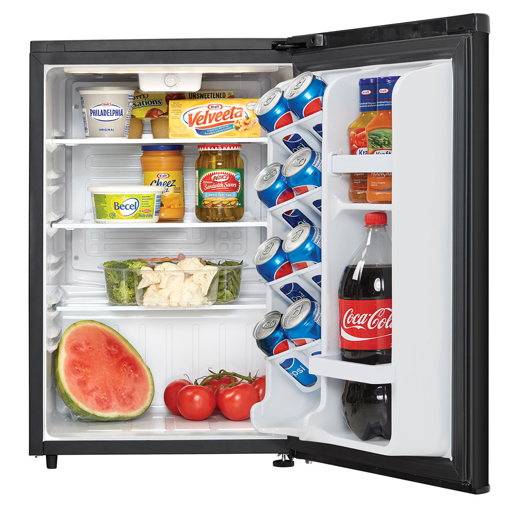 Drawing inspiration from mid-century styling and simplicity, Danby’s patented contemporary refrigerators reimagine retro for the modern consumer. The contemporary classic compact features Danby’s exclusive retro-inspired curved door design, matte black door finish, rubber-grip ergonomic chrome handle, and stylized chrome worktop. Its signature interior only outmatches the exterior features. Boasting 2.6 cu. ft. (73 L) of storage and cooling space, it features two and a half-tempered glass shelves for maximum storage versatility. There’s more than enough room for larger bottles, and the spacious unit helps keep electrical bills in check with its ENERGY STAR® rating and state-of-the-art mechanical thermostat. Maintenance and cleaning are simple with the automatic defrost system. It also includes an efficient CanStor® beverage dispenser and bright white interior LED light. This small refrigerator also features a clever, reversible door hinge that enables you to adjust it for a left or right-handed opening.