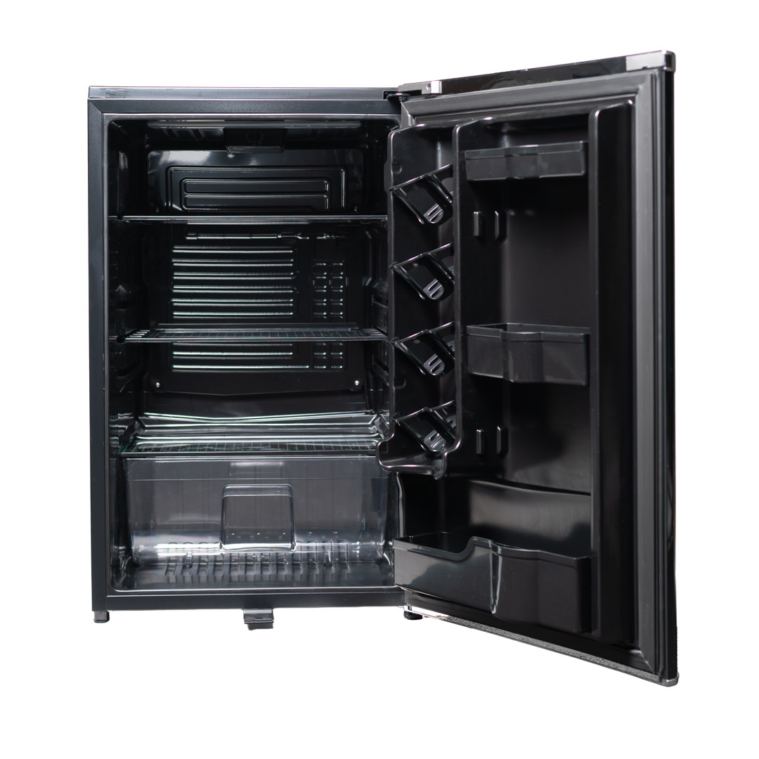 Drawing inspiration from mid-century styling and simplicity, Danby’s patented Contemporary Classic collection of compact refrigerators reimagine retro for the modern consumer. Featuring Danby’s exclusive retro-inspired curved door design, metallic door finish, door lock, rubber-grip ergonomic chrome handle and stylized chrome worktop, its exterior features are only outmatched by its signature black interior. Boasting 4.4 cubic-feet (124 liters) of storage and cooling space, it features two and a half tempered glass shelves for maximum storage versatility and a vegetable crisper with glass top. There’s more than enough room for larger bottles and the spacious unit helps keep electricity bills in check with its Energy Star rating and state-of-the-art mechanical thermostat. Maintenance and cleaning are as simple as can be with the automatic defrost system. It also includes an efficient CanStor beverage dispenser and reliable interior white LED light. This model is built for convenience as the reversible door hinge allows you to adjust it for either left or right-handed opening.
