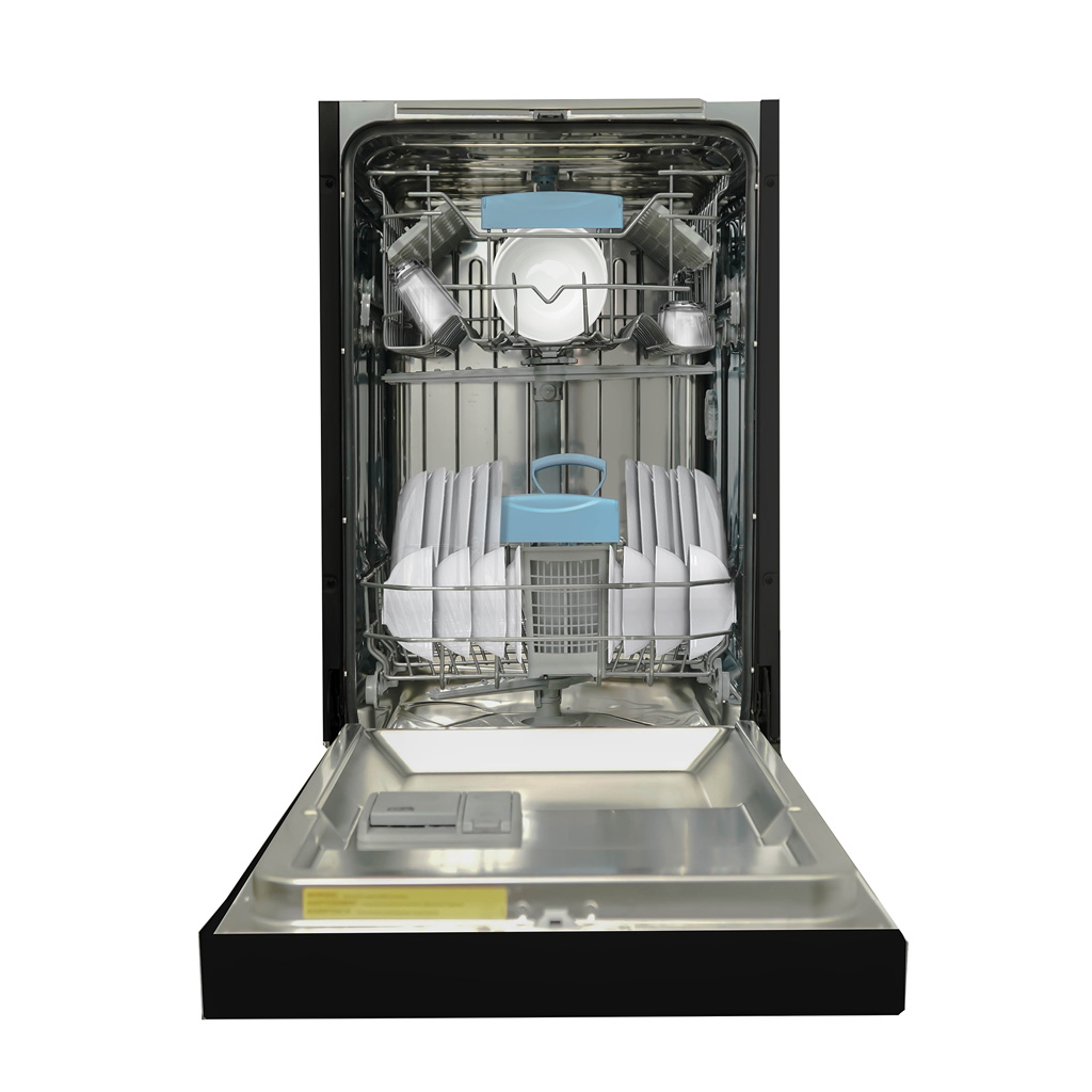 Leave the dirty dishes up to Danby’s 18” ENERGY STAR® compliant dishwasher, perfect for small space living. This built-in black dishwasher holds ten place settings and one silverware basket. It has four wash cycles to choose from: regular, auto, intensive, and quick mode. The dishwasher is designed to operate at 51 decibels, which creates less noise and disturbance than the volume of a normal conversation. The delay start feature lets you pre-select the desired start time, so your dishes get washed on your schedule.