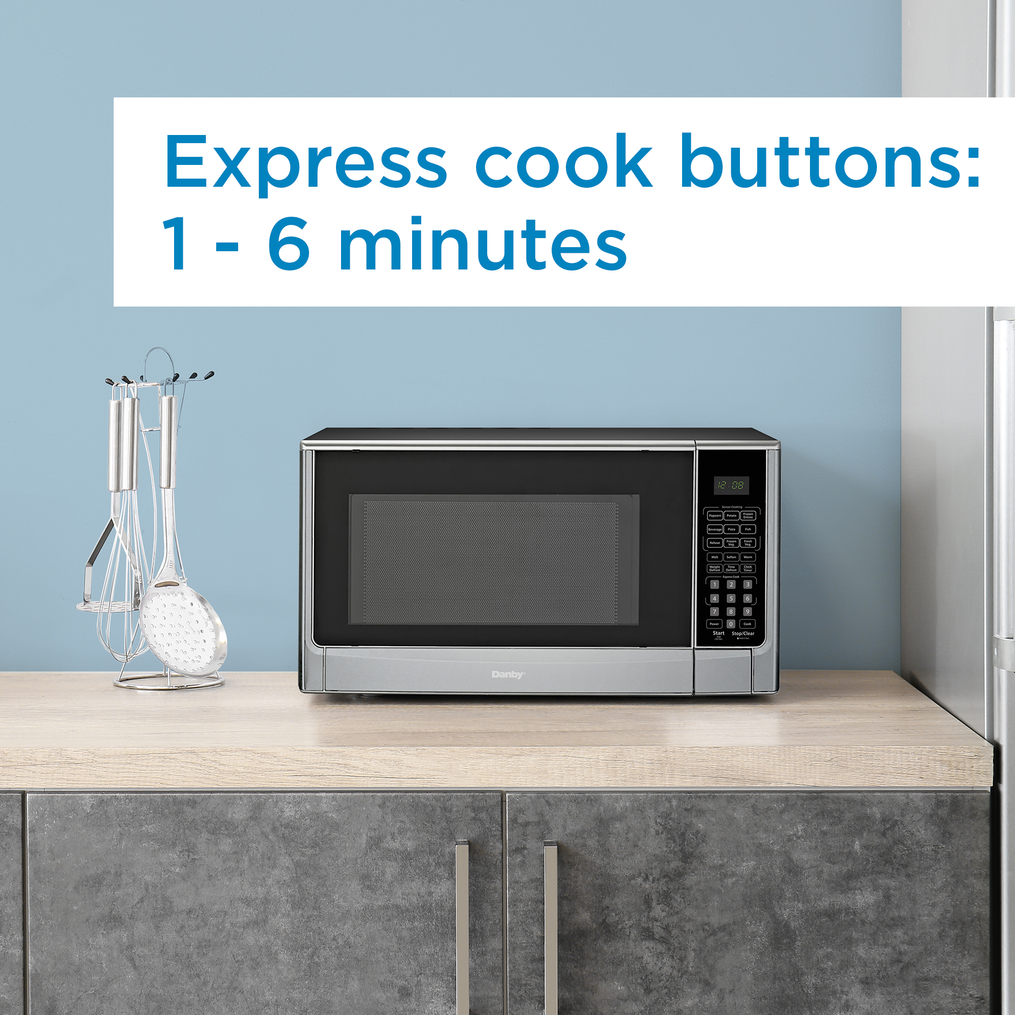 Cook all your favorite meals quickly with Danby’s 1.4 cu. ft. microwave with sensor cooking controls. Available in black, white, or stainless-steel, this stylish model can accommodate large dishes and plates. Danby microwaves are well suited for dorm rooms, offices, cottages, or kitchens. With 1100 watts of power, this model comes with 9 sensor cooking control options: popcorn, potato, frozen entrée, beverage, pizza, fish, reheat, frozen vegetable, and fresh vegetable. It’s easy to reheat lunch or dinner with the sensor cooking function that turns off the microwave at exactly the point when cooking or reheating is done. The one-touch auto defrost option simplifies your cooking needs and the express cook buttons provide 1-6 minutes of cooking time. The child/control lock-out option guarantees a safe environment for your child!
