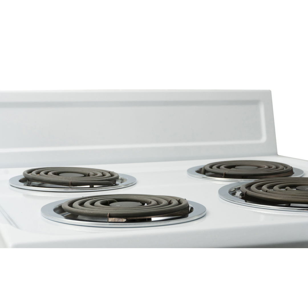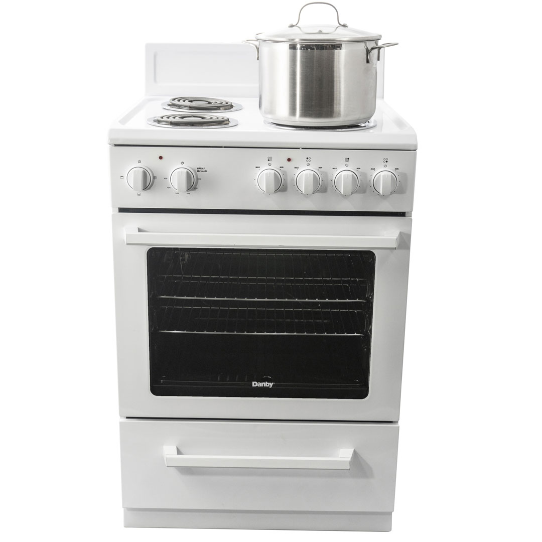 - Compact solution for small space living: 24″ free standing electric range with a large 2.5 cu. ft. oven capacity