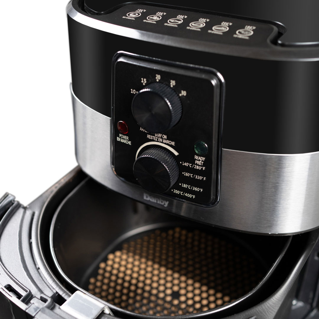 Back to SalesLooking to indulge in juicy chicken wings, crispy fries and onion rings? Danby’s Air Fryer let’s you create healthier versions of all your favorite fried foods, crisped to perfection and deliciously guilt-free. Engineered to produce the same crunchy taste and texture that makes deep fried food so good, this technology reduces fat and calories using little to no oil. The 3.2qt (3.5L) size makes it easy to prepare meals for up to 4 people. This model is equipped with a timer for up to 30 minutes and has a wide adjustable temperature range of 140-200°C (284-400°F), perfect to suit most recipes. The removable dishwasher safe basket makes this easy to clean and the sleek, compact design makes it easy to store. With a 6-item cooking guide, including chicken, fish and more, this Air Fryer is one of the most versatile kitchen gadgets and should be a staple in everyone’s kitchen.