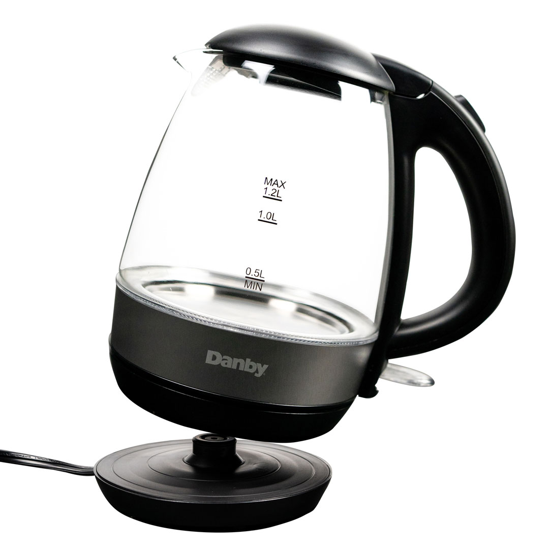 Enjoy the perfect cup of tea, hot chocolate, or make instant meals with the 1.2L capacity glass kettle by Danby. Ideal for small households to make a quick drink or for the college student who’s short on time but needs a quick meal. Features include bright blue LED lighting that illuminates during boiling and a built to last design that is compact, space-saving and looks great in any modern kitchen. With 1500 watts, this electric kettle is easy to operate, store and can boil water faster than a microwave. The powerful rapid-boil system provides fast heating from any standard outlet and the auto shut-off function helps keep the kettle from boiling dry. This cordless kettle lifts off the 360-degree swivel base for easy filling and pouring. Pair this model with your French press and make the ideal cup of coffee. Brewing your favourite hot beverage has never been more convenient!